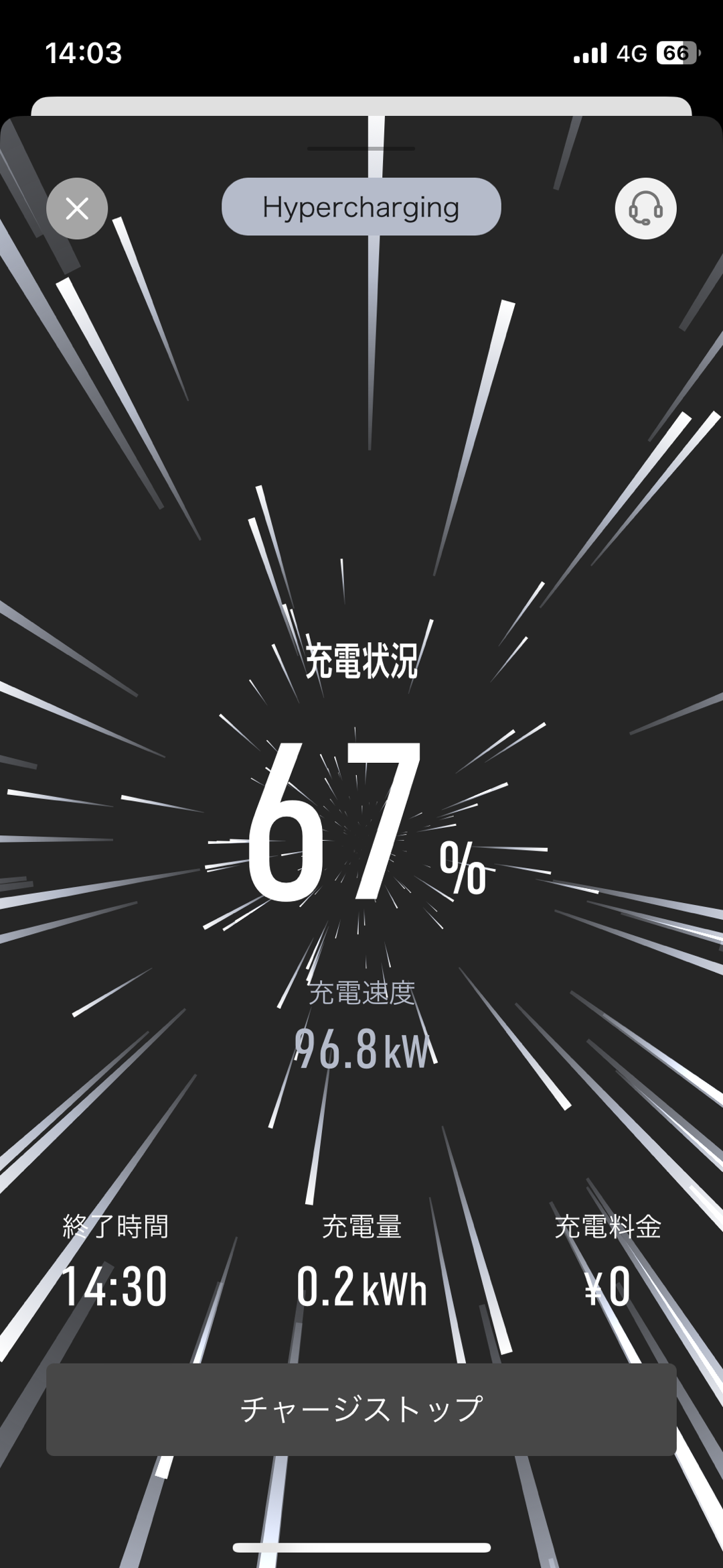 充電中はスマートフォン上でこのような画面になりリアルタイムで充電状況が見れます。