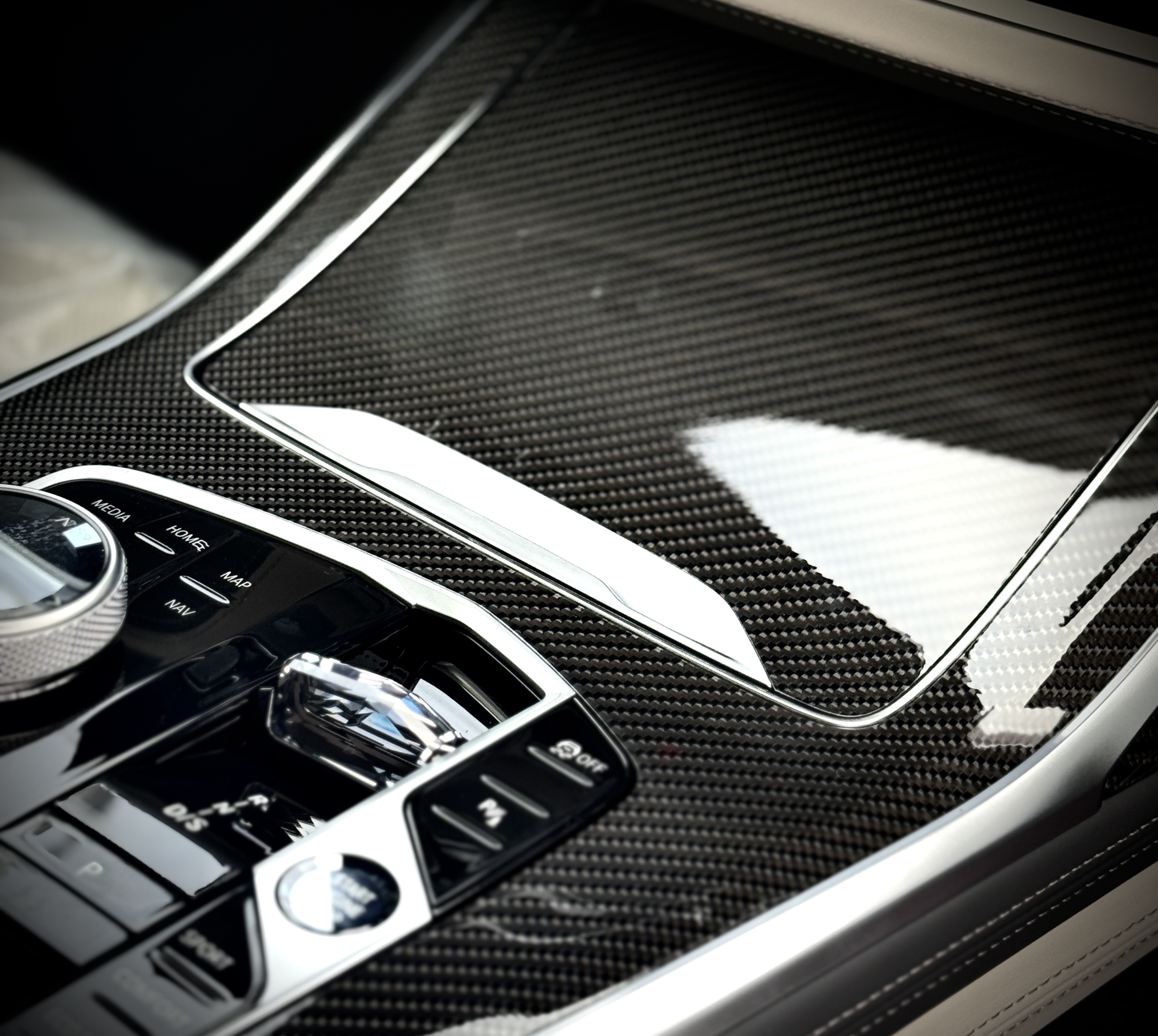 カーボンの精緻な質感が車内の他のエレメントと良き融合をもたらします。