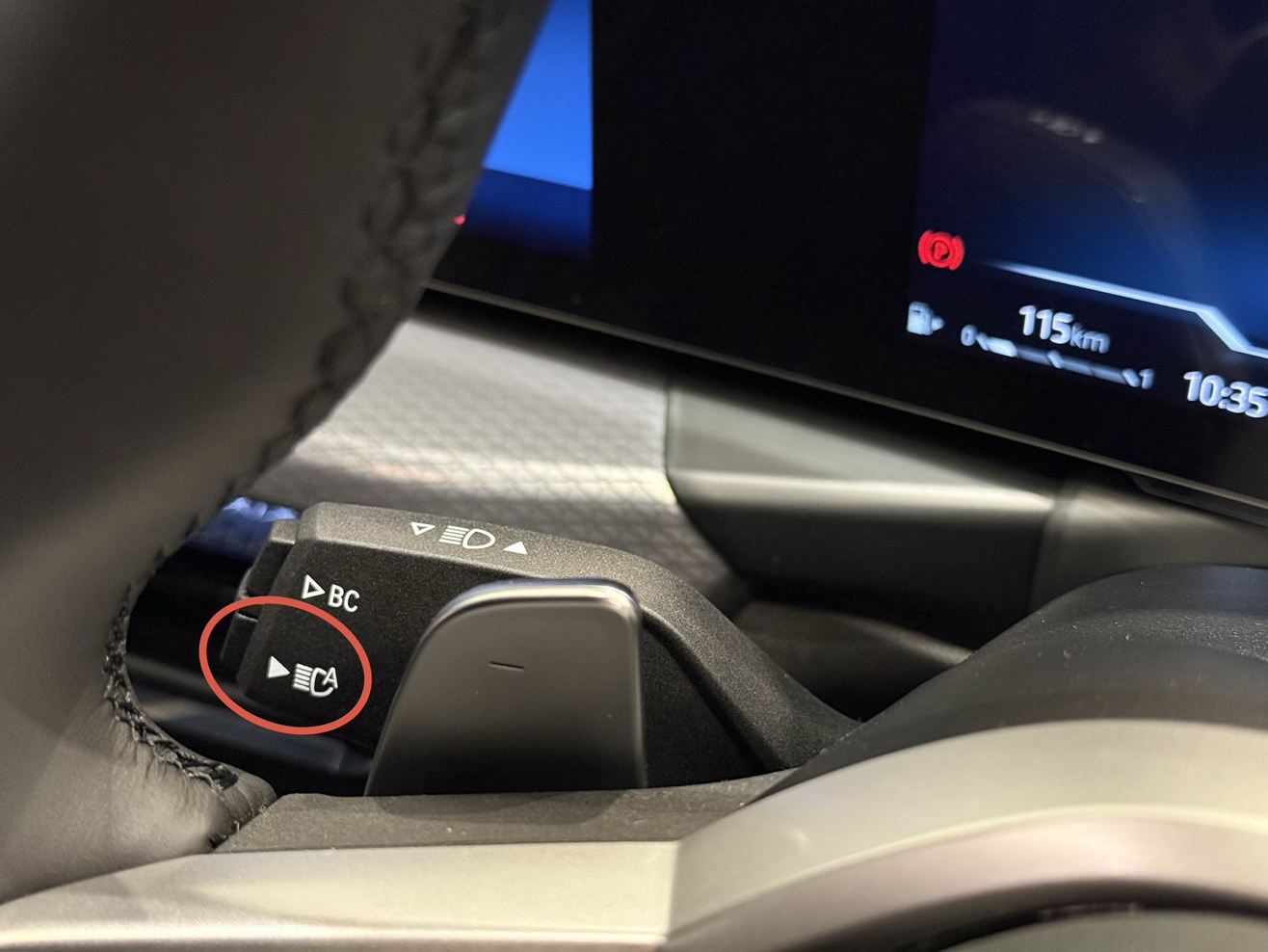 ハイビームアシスタントはウィンカーレバーのサイドに装備されたボタンよりオン/オフが可能です。