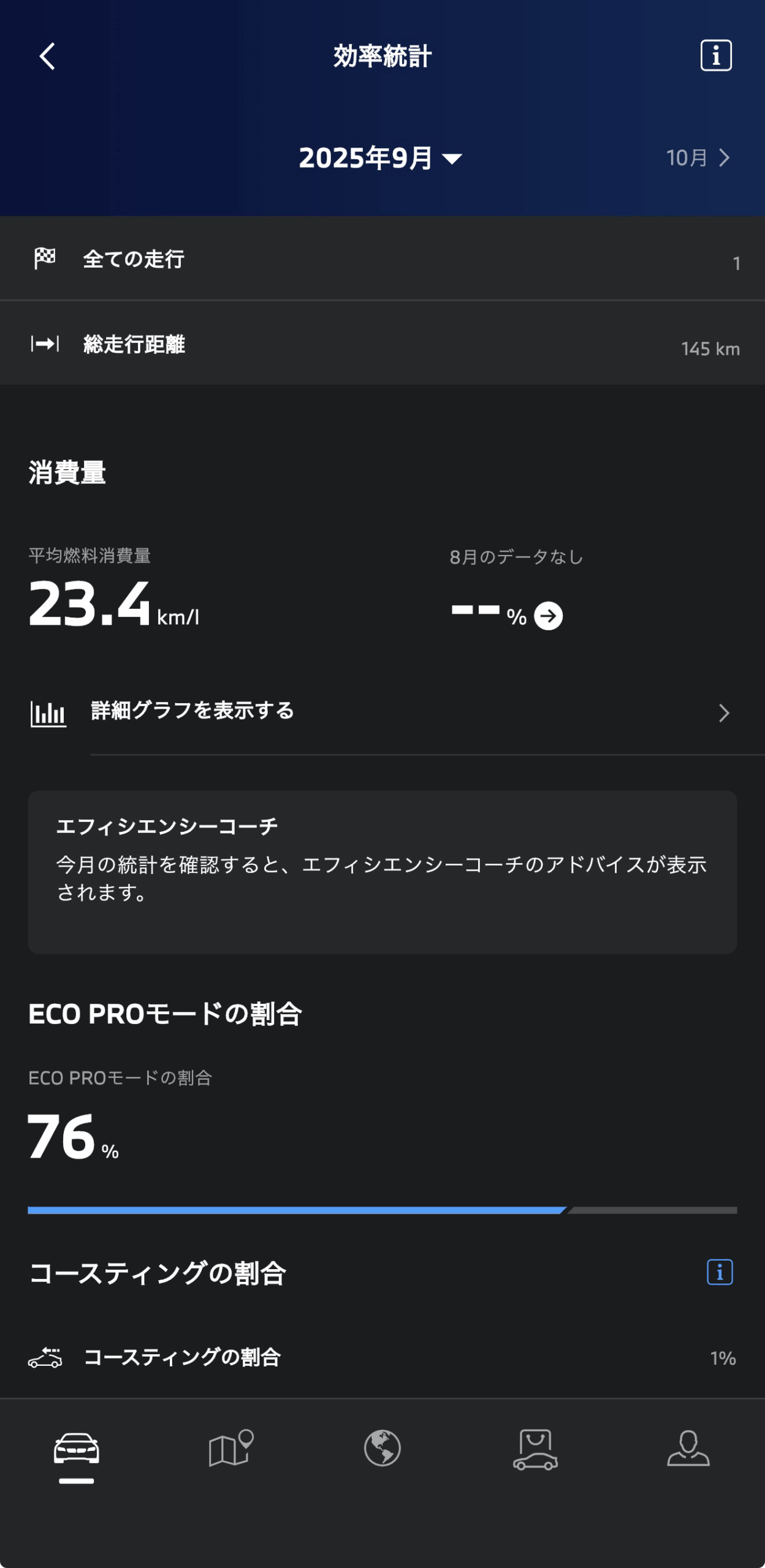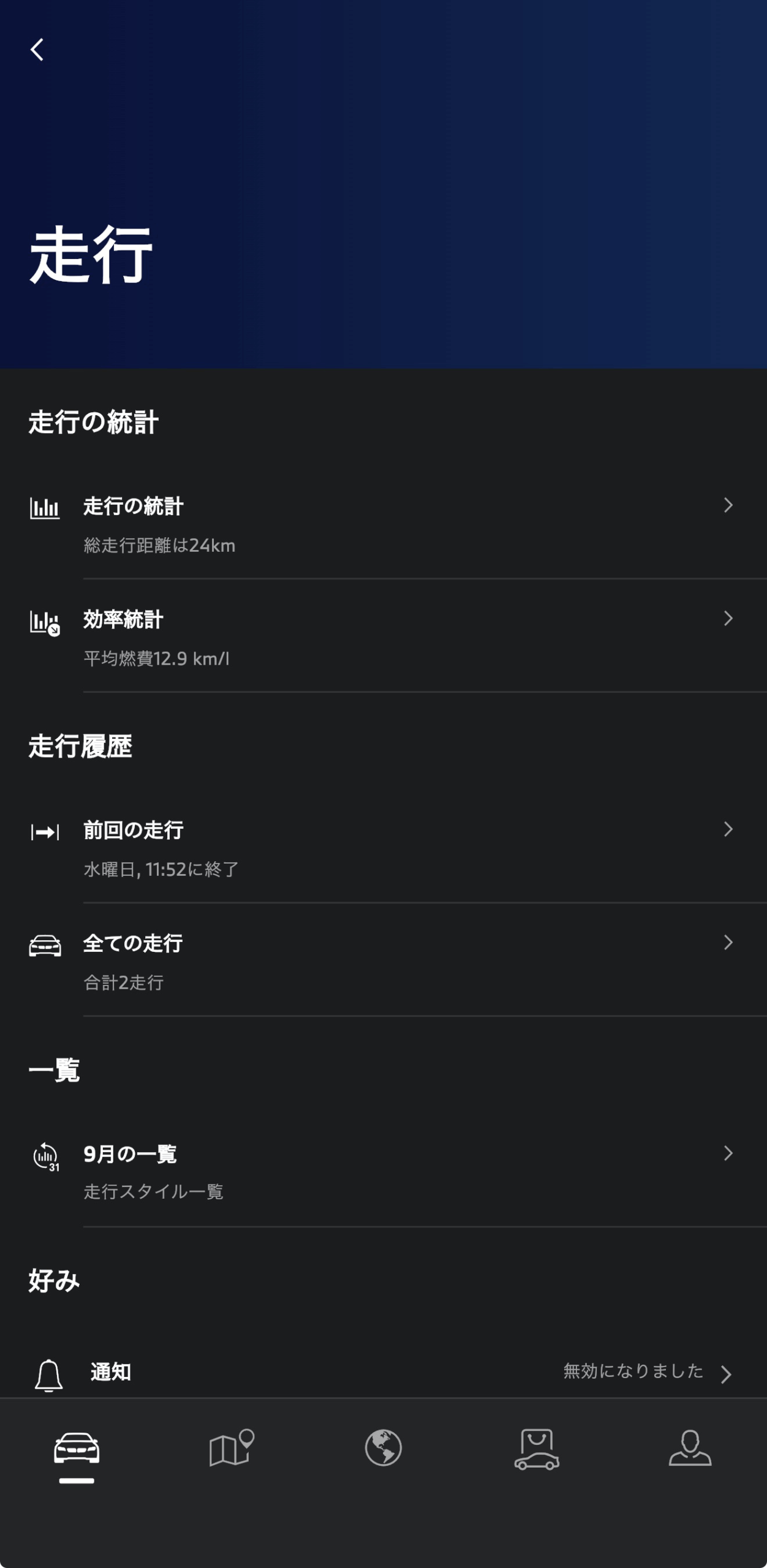 前月の走行スタイルがアプリ通知で届いて、車両からよりも細かい内容が確認できるので便利ですよ^^