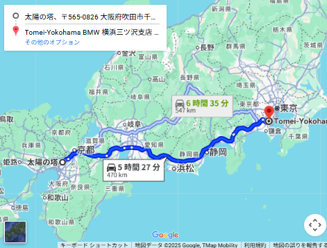 大阪万博記念公園近くからスタート⇒神奈川の自宅までの 約500kmの距離です。