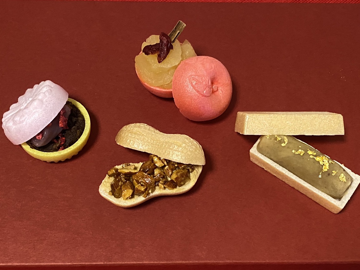 チョコレートやナッツ、キャラメルやベリー風味の白餡そこにフルーツの蜜煮や季節の栗を組み合わせます。