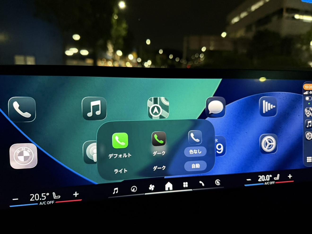 CarPlayの設定アプリから画面の表示デザインを「デフォルト」「ダーク」「色なし」から選ぶことができます。