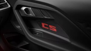 専用“CS”ロゴ入り CFRP製センター・コンソール(USB電源、ワイヤレス・チャージ付き)