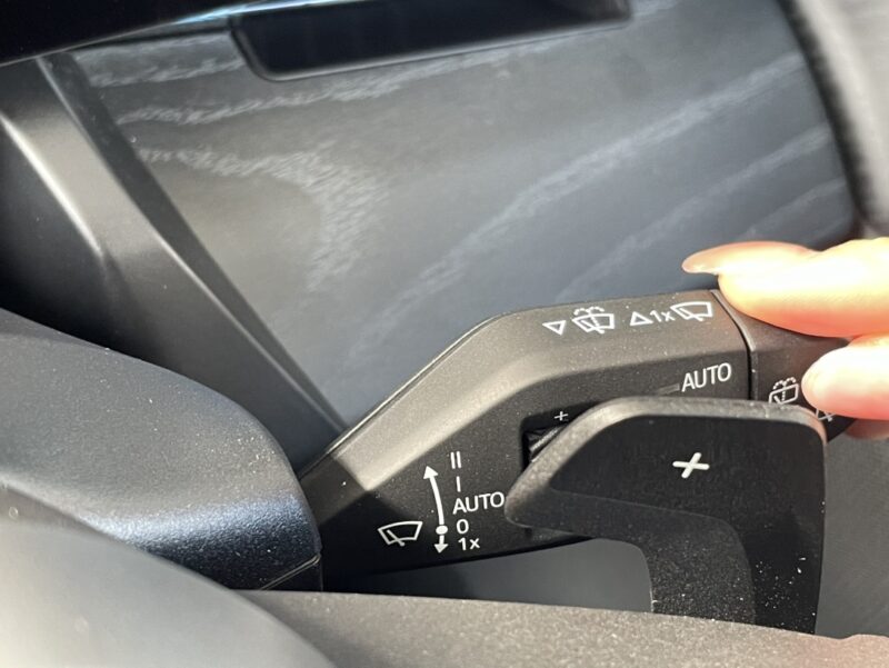 レバーの先端のつまみをひねるとリアワイパーがONになります。