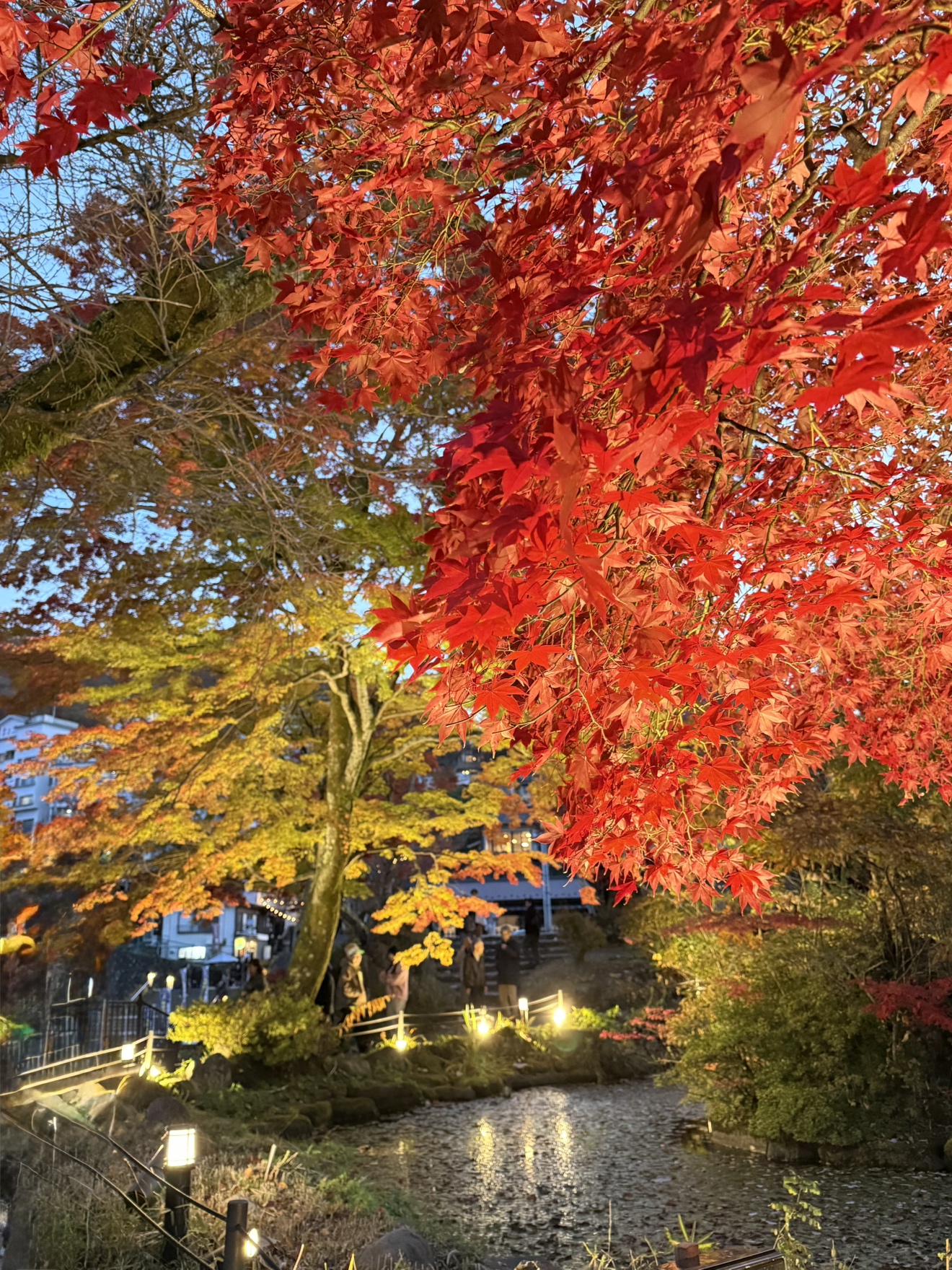 池のほとりにあった紅葉はライトアップされていてとっても幻想的な空間でした✨