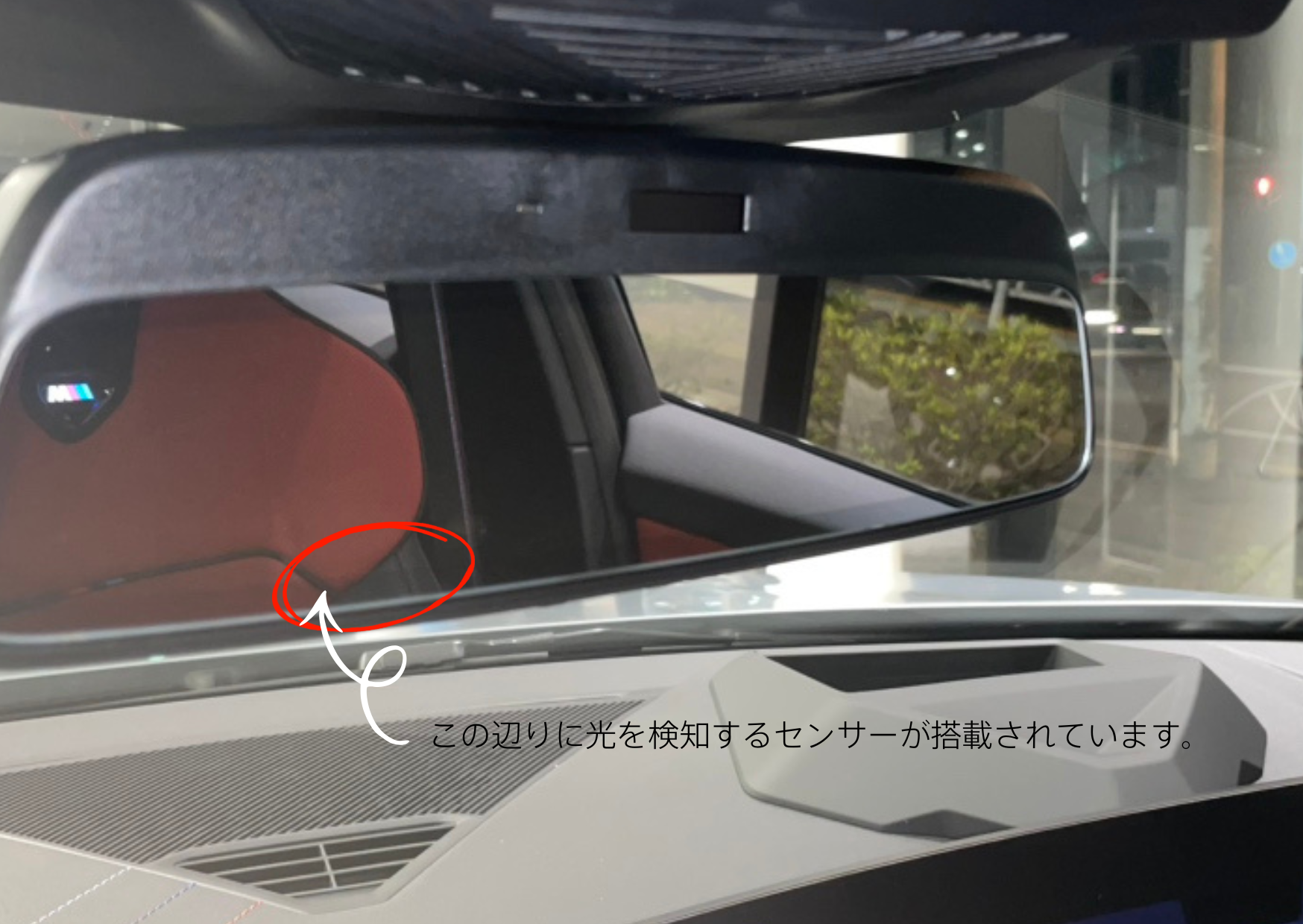 ミラーの一部にセンサーがついており、そのセンサーが強い光を検知するとミラー全体が反応し夜でも眩しくなく、安心して運転できます。