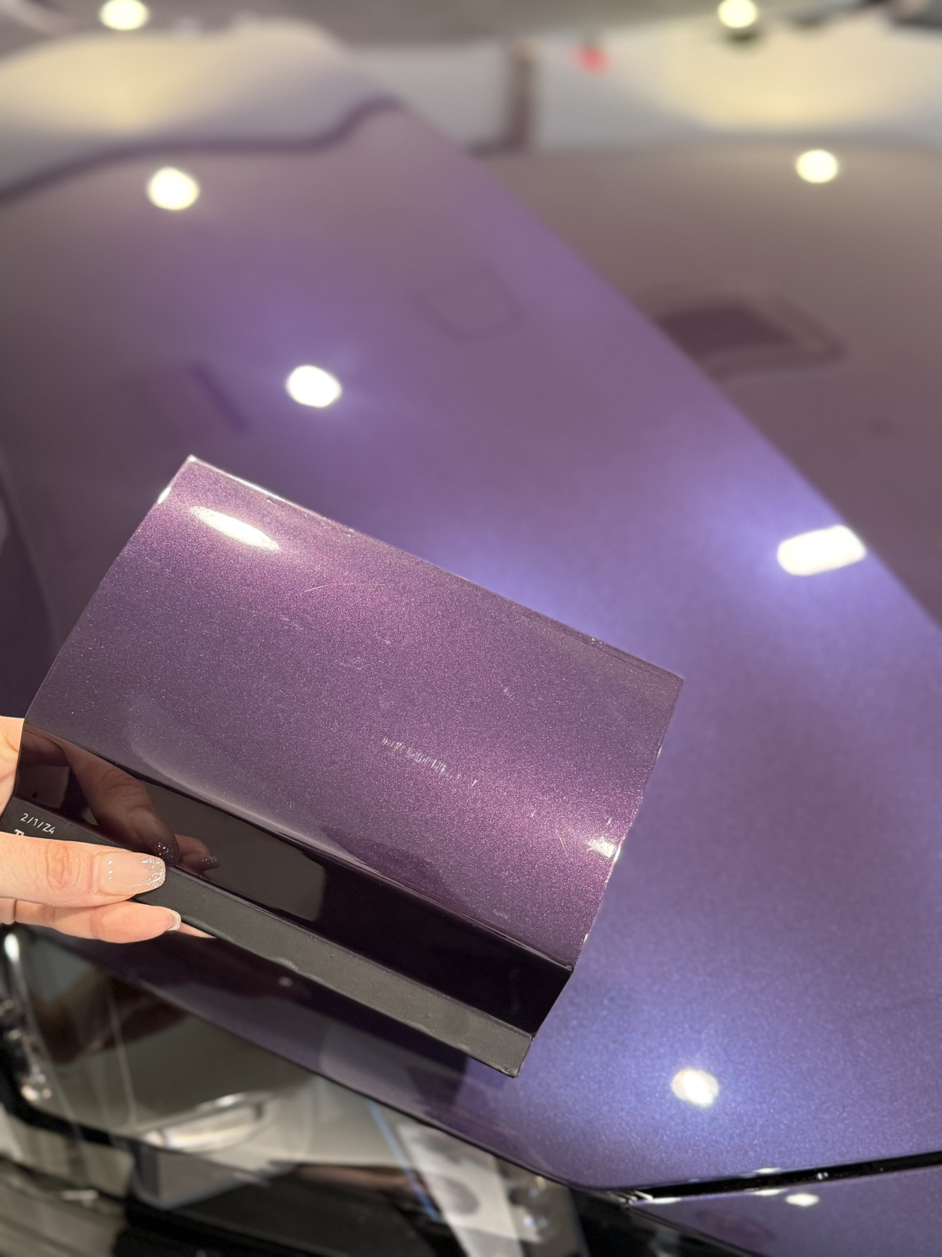 夜間や日陰などではパッと見黒く見えますが、太陽光の下では 塗装に含まれる大粒のメタリック粒子が輝き、鮮やかなロイヤルブルーや、かすかに紫がかったような奥行きのある表情に変わります。