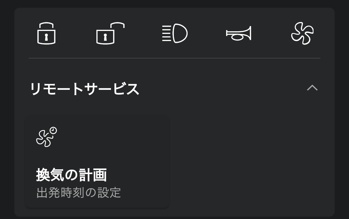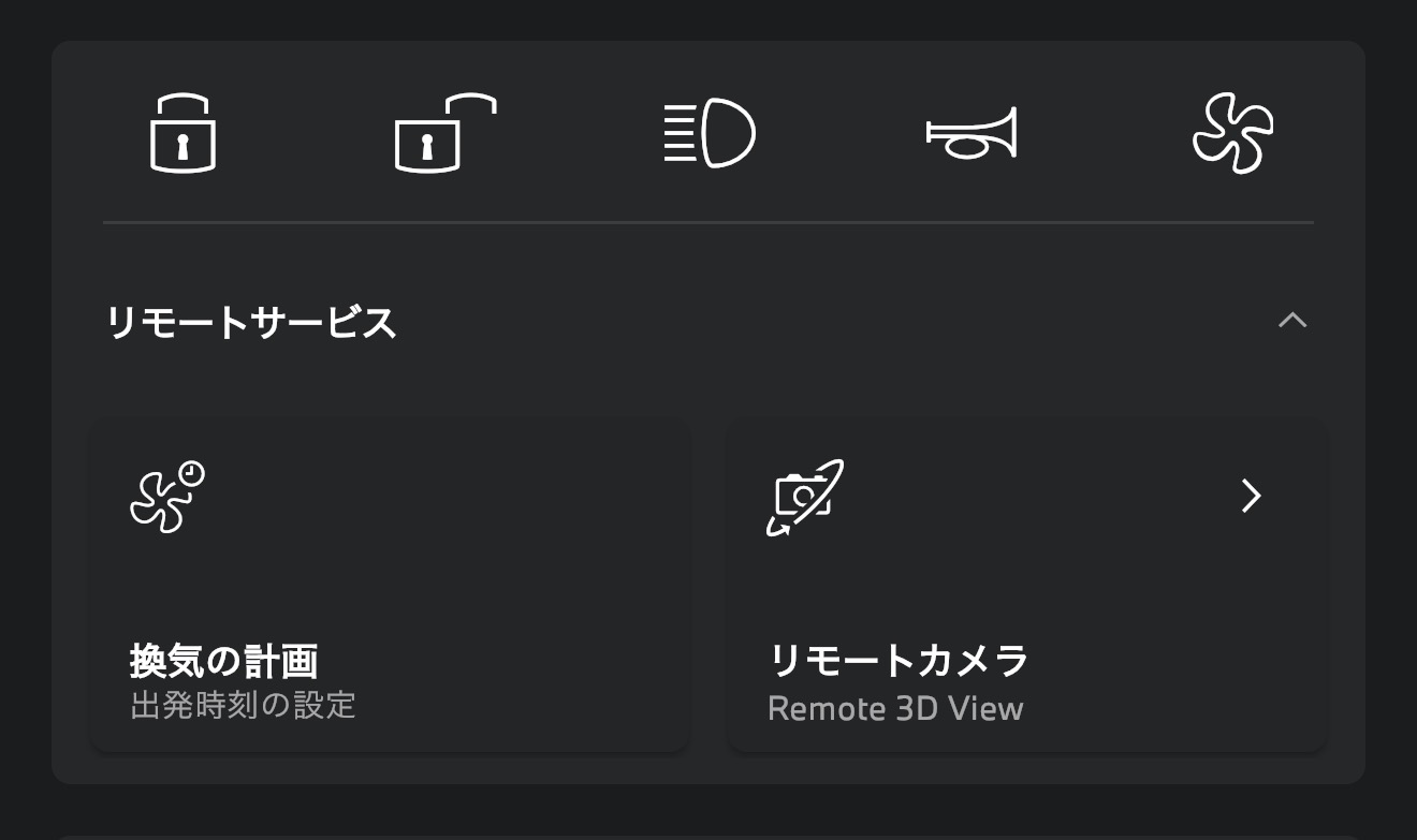 「ALL GOOD」と車両が表示されている画面を少し下にスクロールすると、”リモートサービス” という欄が出てくるので確認できます。