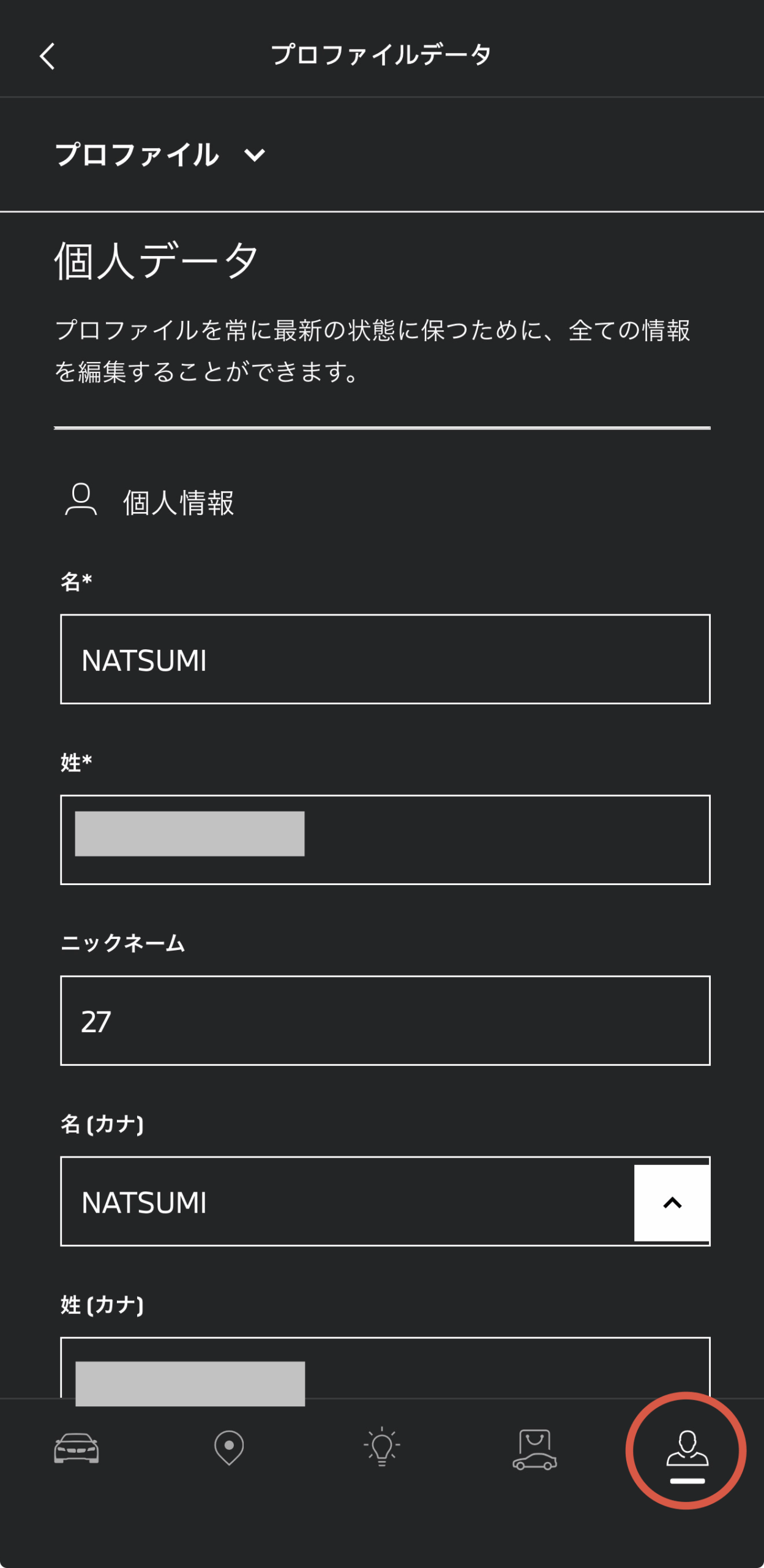 MyBMWアプリを開いて右下の「人型マーク」をタップ。