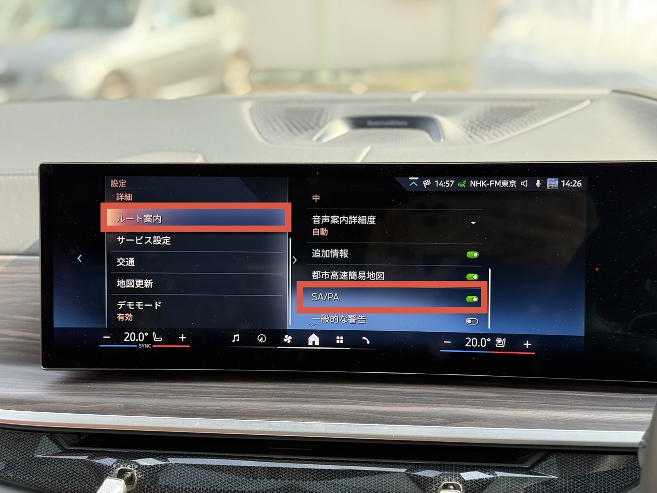 ②「ルート案内」 から 「SA/PA」 をオンにする