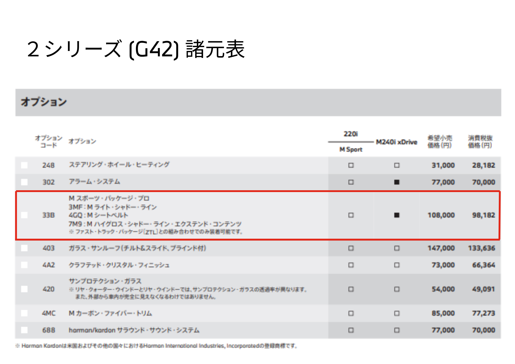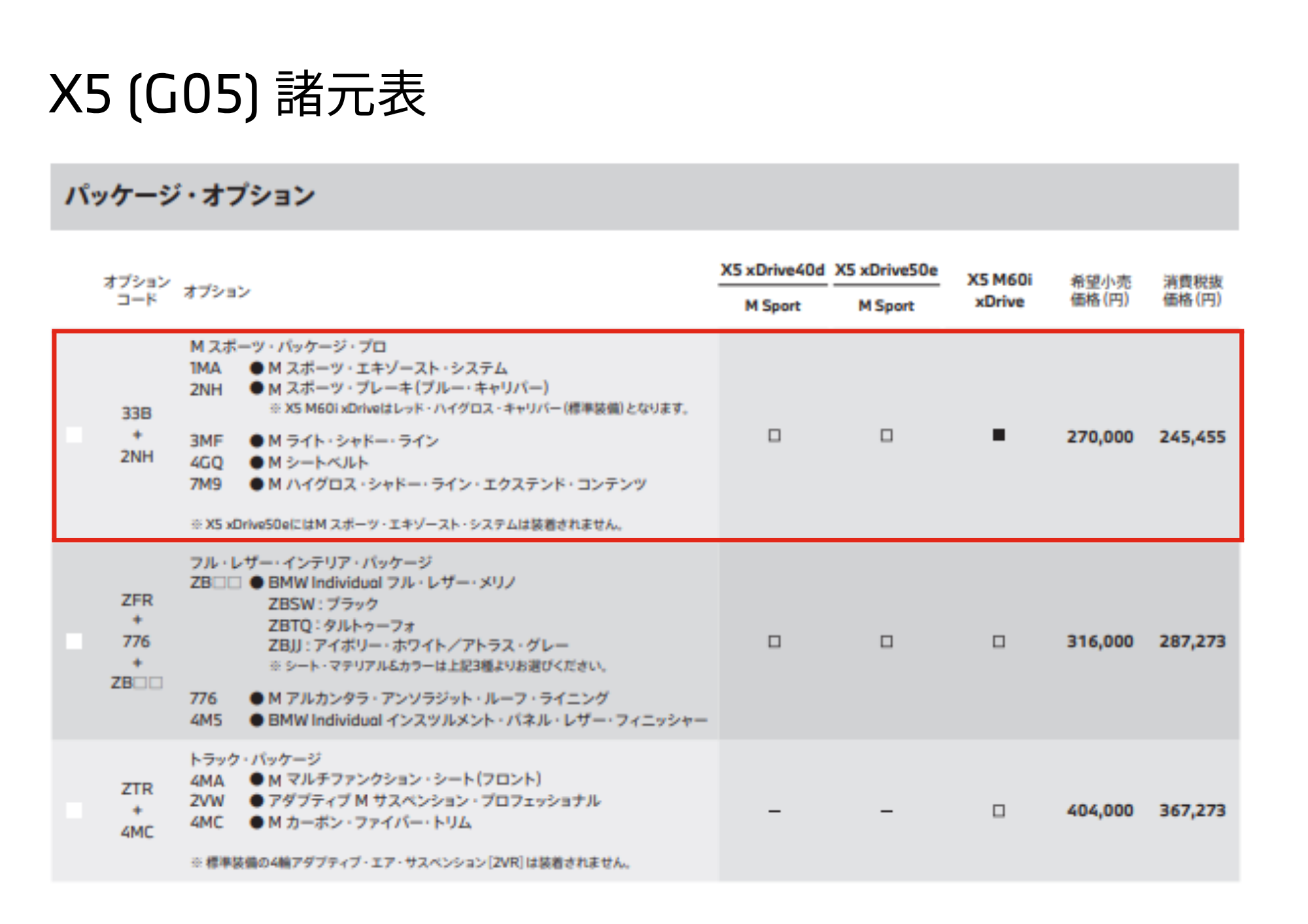 | 7M9 | M ハイグロス・シャドー・ライン・エクステンド・コンテンツ | ブラックのグリル等 |